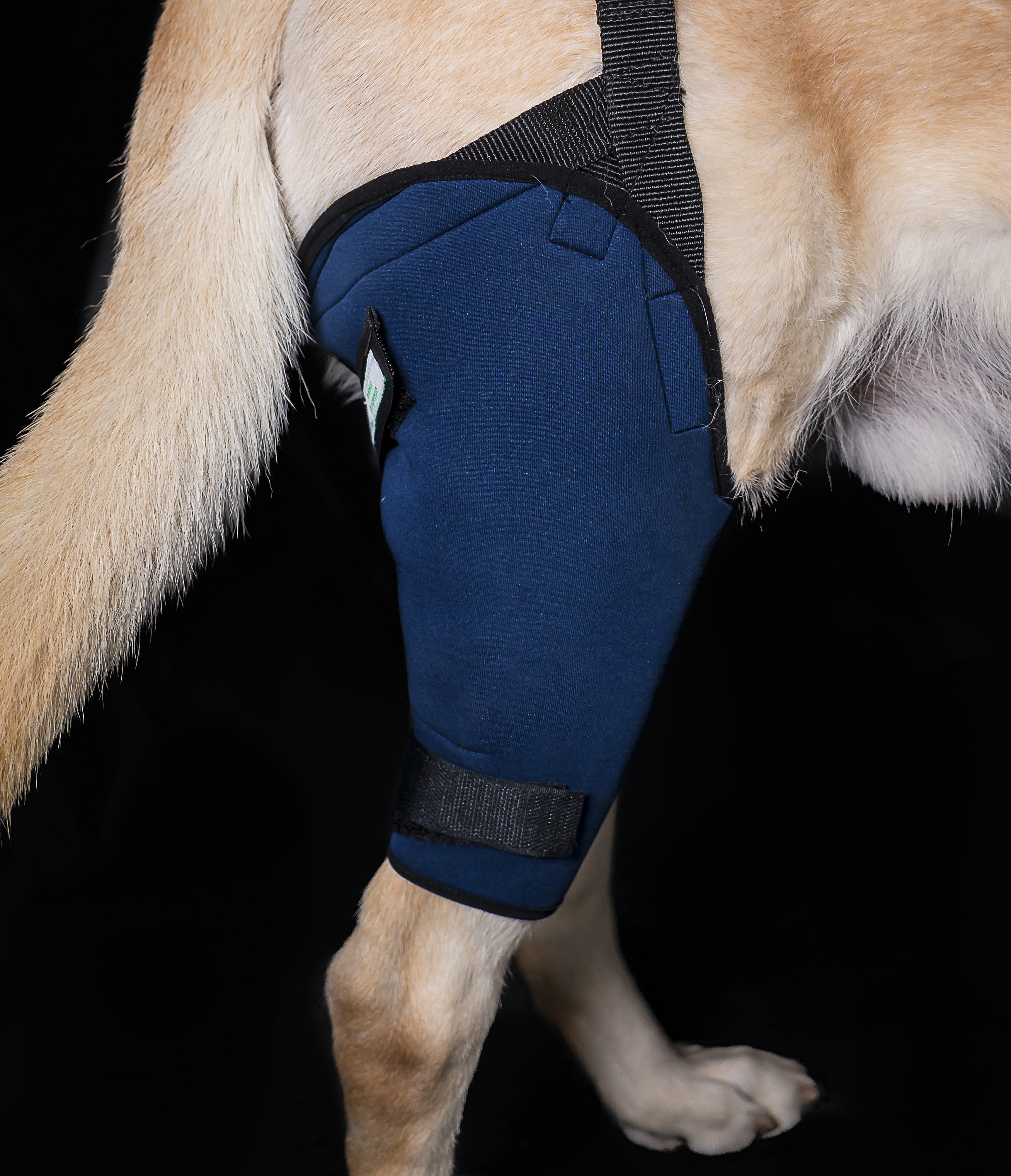 El protector de rodilla Ortovets brinda un óptimo soporte después de una cirugía.